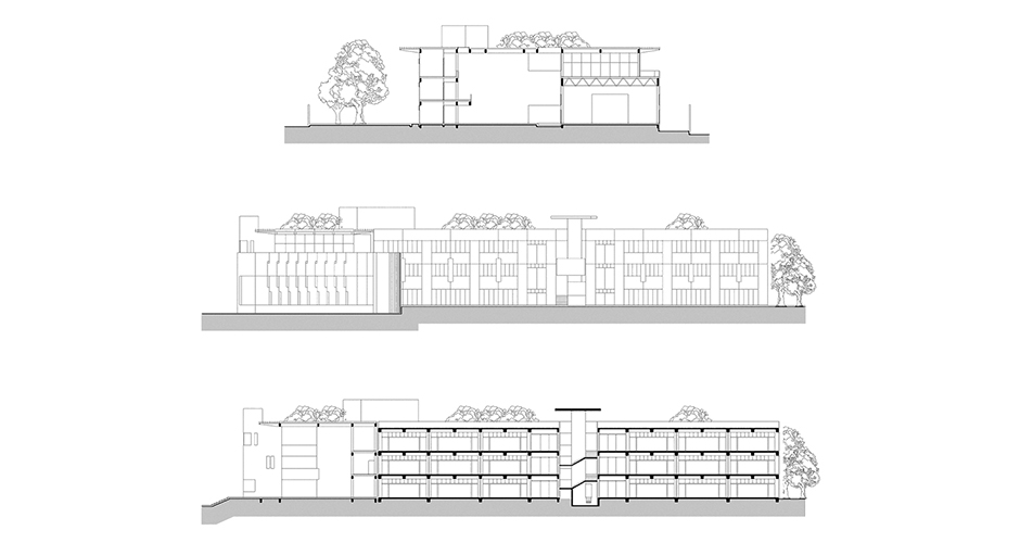 Después de analizar y estudiar las características físicas y ambientales de cada sitio el partido de composición de los edificios se organiza en torno al edificio docente administrativo, que en planta baja tiene los espacios necesarios para cumplir dichas funciones y en la parte superior cuenta con la biblioteca y el salón de usos múltiples, emblema del conjunto. La sección de preescolar está totalmente aislada, cuenta con amplios espacios al aire libre para la recreación de los niños y una huerta en la quinta fachada, que de este modo se incorpora a la educación sobre la sustentabilidad que las construcciones pueden contener.